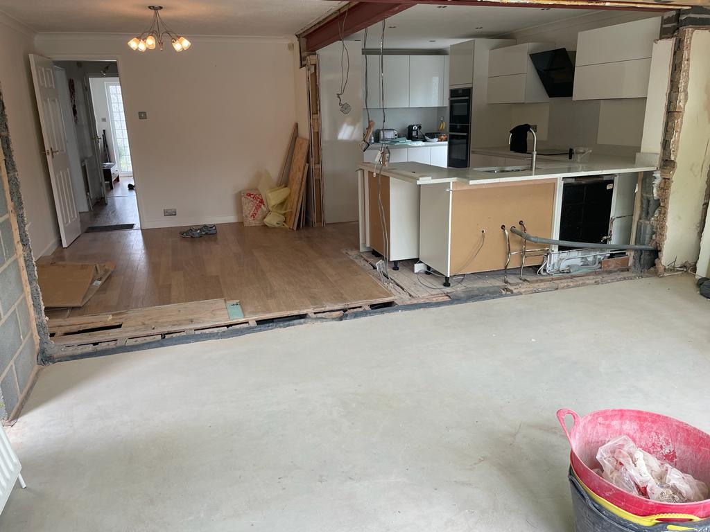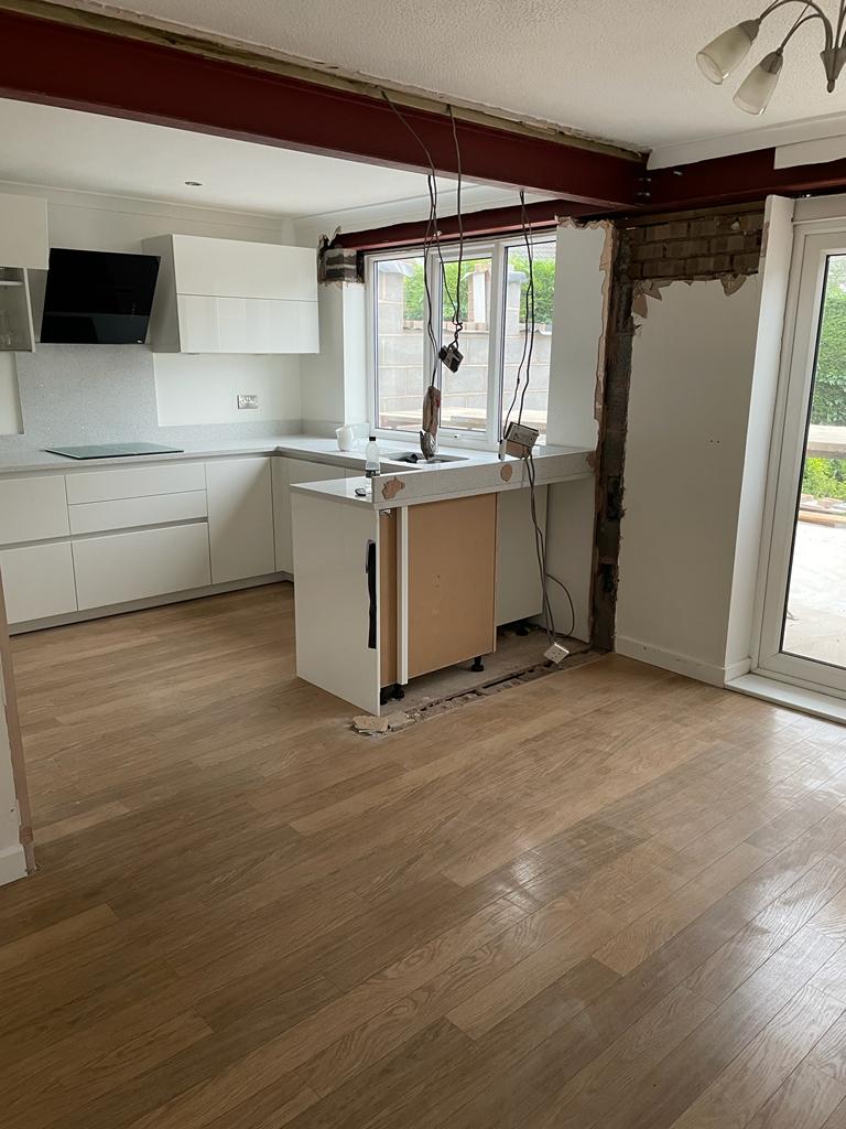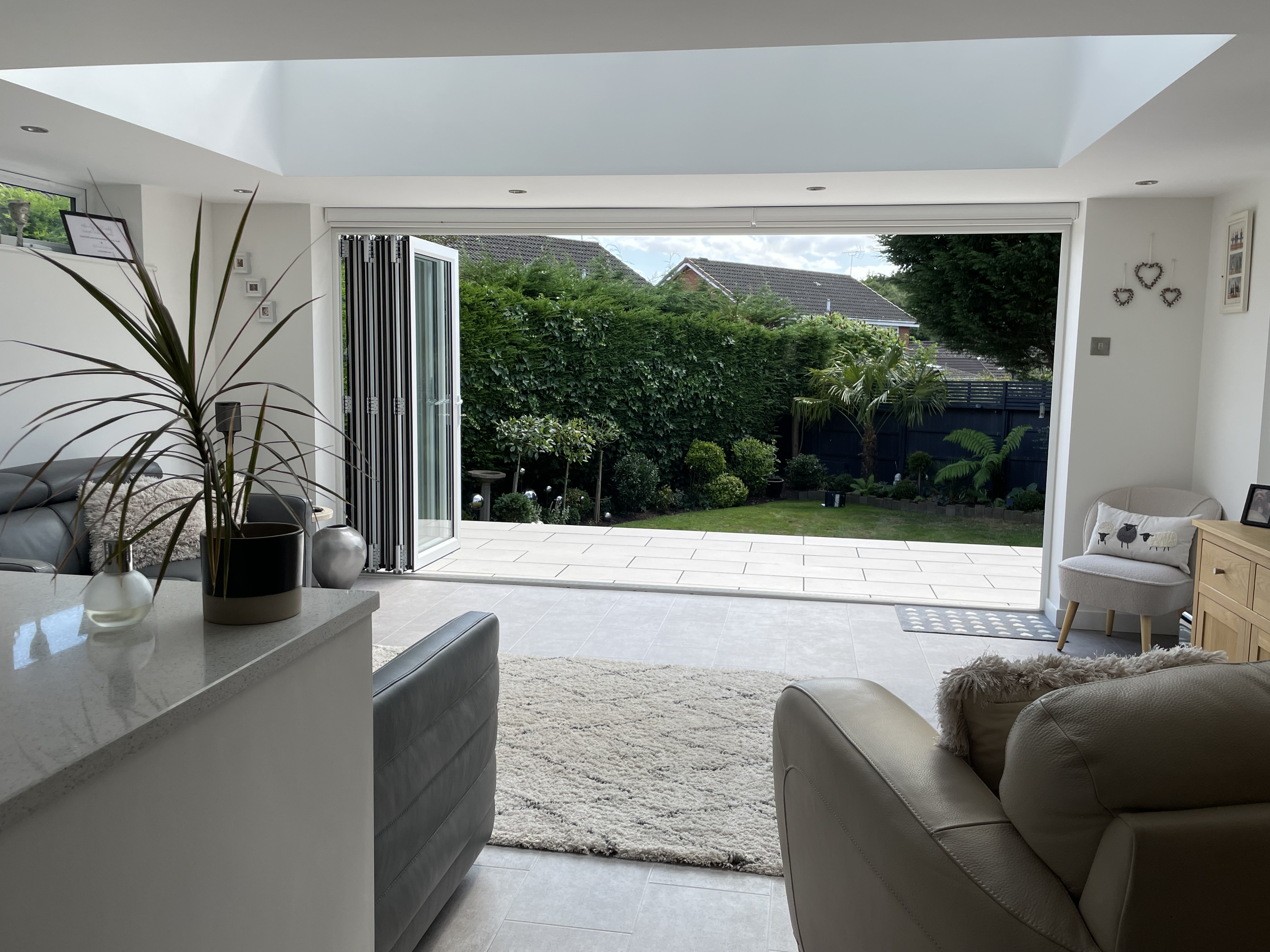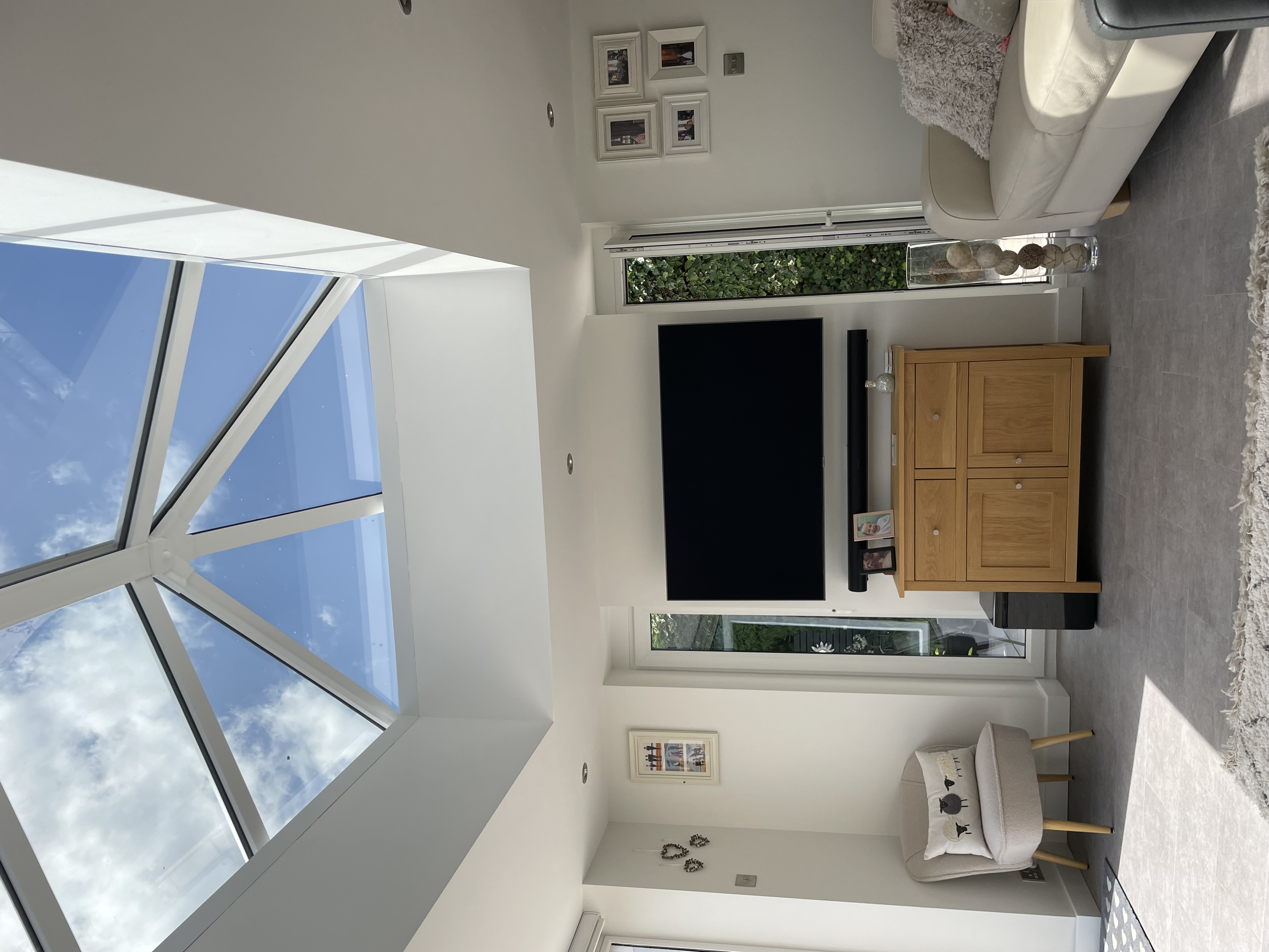 The conservatory was originally set out as a separate room but the customer requested to have it all open plan. As you can see from the photos it is now an extended sitting room from the kitchen. The customer stated she wanted the extension to feel as though it was a garden room and that the garden was seeable from all angles, which is the reason for the Bi-Fold that goes from side to side. The build also features ‘pencil’ windows that are on either side of the tv which adds extra character to the room. The customer was thrilled with how the orangery turned out and thoroughly enjoyed her experience with us. This room is now the most used room throughout the house.